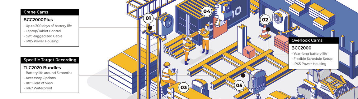 建築現場・産業分野などで数カ月から1年にわたる長期間のビッグデータをひとつの映像に収めるのに最適なカメラです。